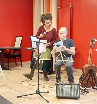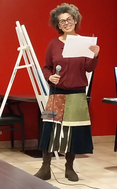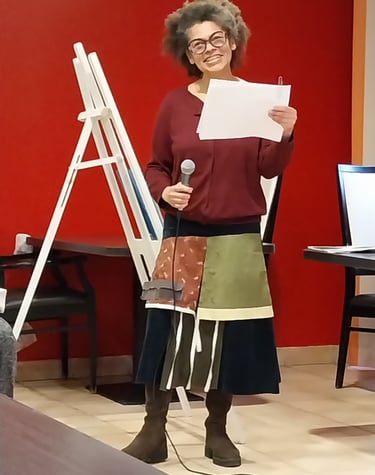 Conteuse et comédienne, j'anime des ateliers théâtre forum, je partage des textes à travers des lectures publiques pour tous les âges, des enregistrements audio et la création de fonds littéraires (dont FALC) pour institutions et entreprises.
