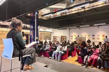 Passionnée par l'art de raconter et de transmettre, je navigue entre l'écriture, la lecture publique et la formation. Mon parcours m'a menée du travail social à la littérature, tissant des liens entre les mots et les êtres humains.